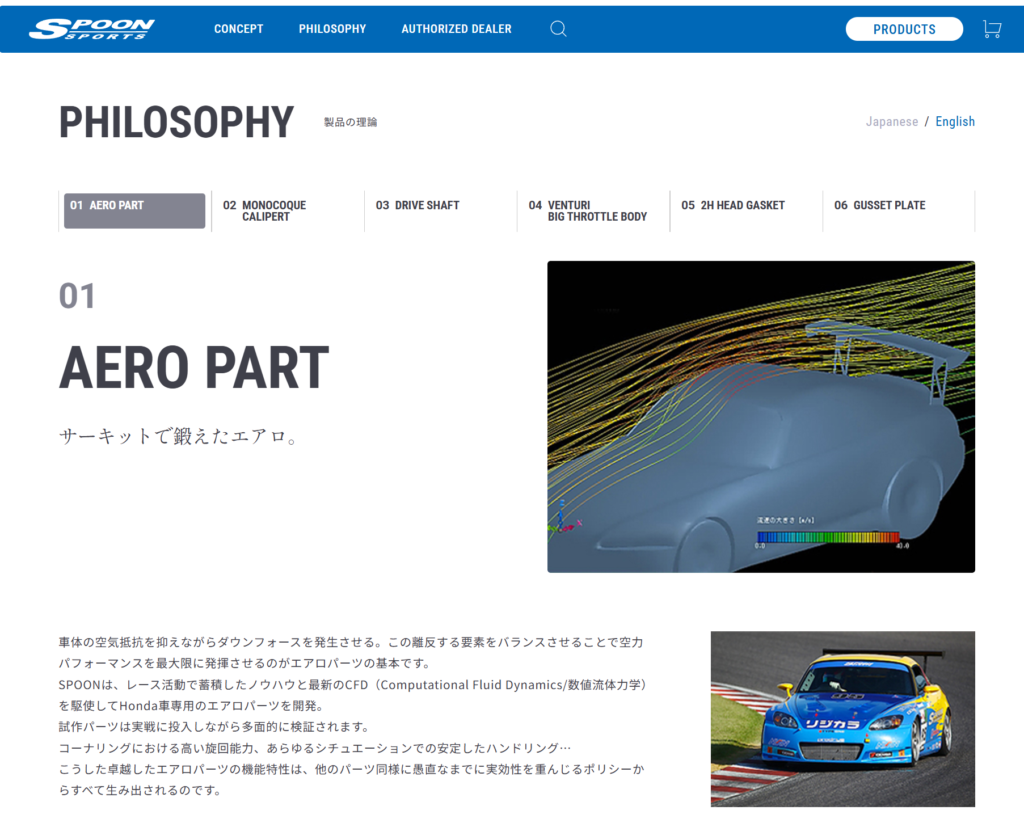 まずはSPOONだ。ホンダのスポーツタイプ乗りならば青いロゴでSPOONを見る事は絶対あるはずだ。そして現在もスーパー耐久レース(S耐)に参戦をしているので個人的には馴染み深い。